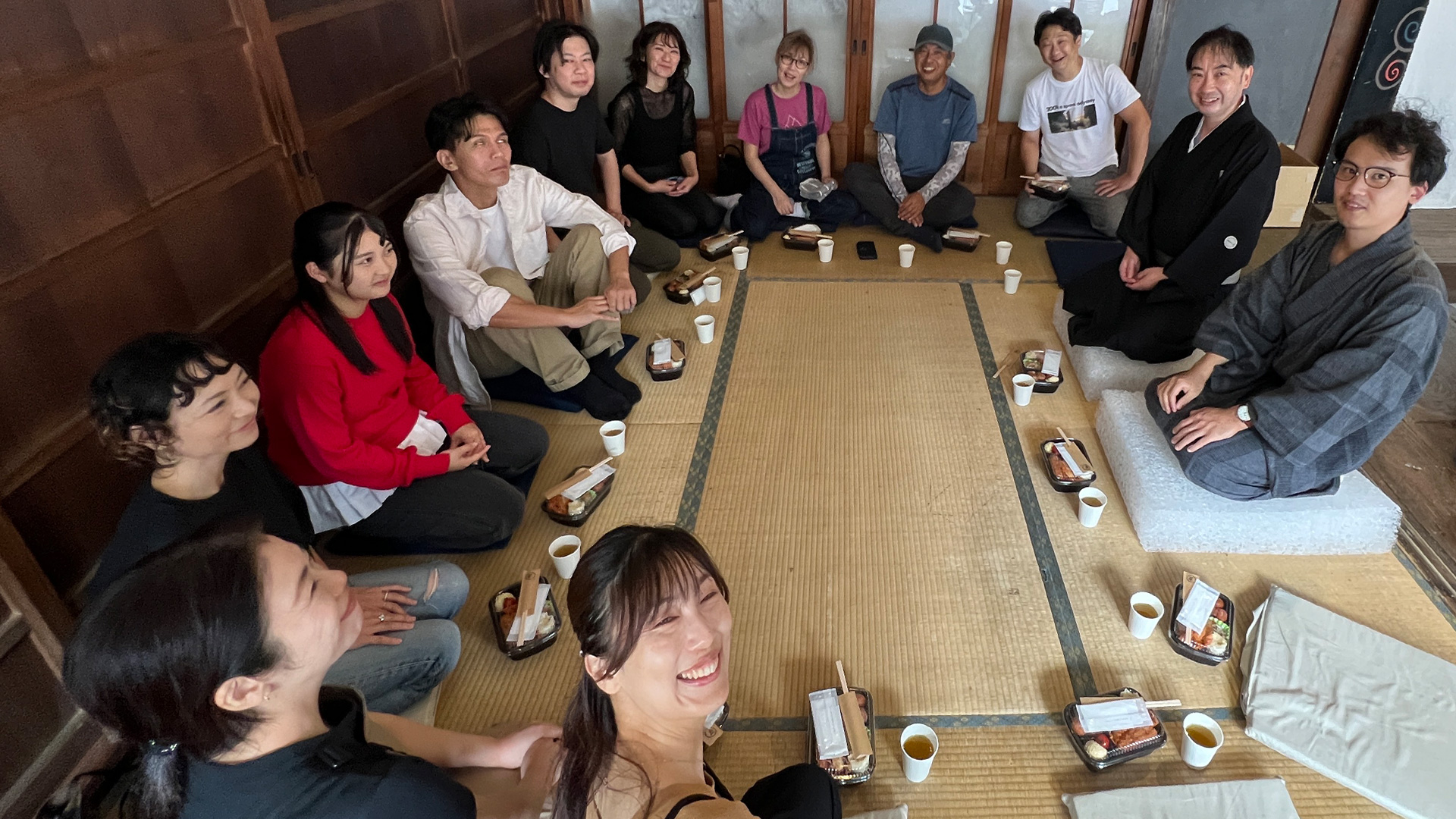 地元朝倉の旬を凝縮した特製弁当を、狂言師と共に。食事をしながらの懇談や、希望者には狂言師直伝の「発声・基本動作ワークショップ」も実施。文化の真髄に触れるひとときです。